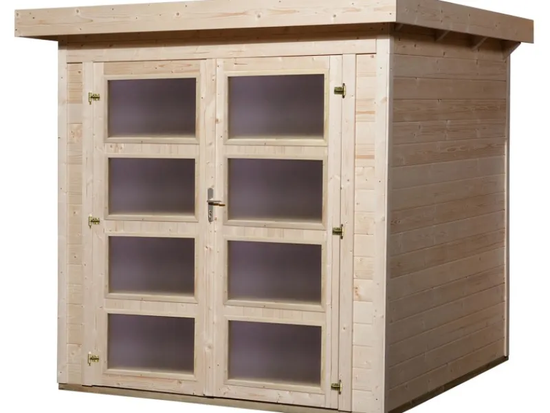 Das Holz-Gartenhaus überzeugt durch sein modernes Design und ist dabei in der Farbe Natur gehalten. Es eignet sich besonders zur Aufbewahrung von Gegenständen.