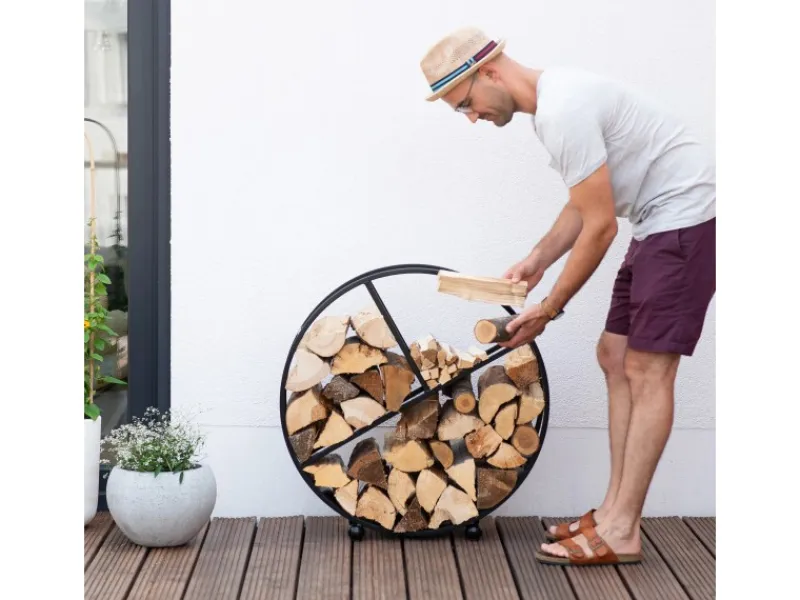 Minimalistisches Design, maximale Funktion – das Kaminholzregal Osiris von Westmann punktet mit einer runden Stahlkonstruktion im Industriedesign, niedrigem Eigengewicht und einfacher Nutzbarkeit.Elegantes Design, einfaches Handling – mit dem ansprechenden Brennholzregal Osiris von Westmann bringst du im Handumdrehen Ordnung in dein Brennholz. Ob auf der Terrasse oder neben dem Kamin im Wohnzimmer, das Brennholzregal fügt sich dank der modernen Konstruktion aus robustem Stahl hervorragend in die Umgebung ein. Die ansprechende runde Konstruktion ist in 3 Fächer unterteilt, dadurch kannst du problemlos Holz in verschiedenen Größen griffbereit und ordentlich lagern. Durch die 4 kugelförmigen Füße ist eine hohe Standsicherheit des Regals gewährleistet. Osiris von Westmann ist echte Handarbeit, und lässt Designanspruch sowie Funktion perfekt in einem Produkt verschmelzen!