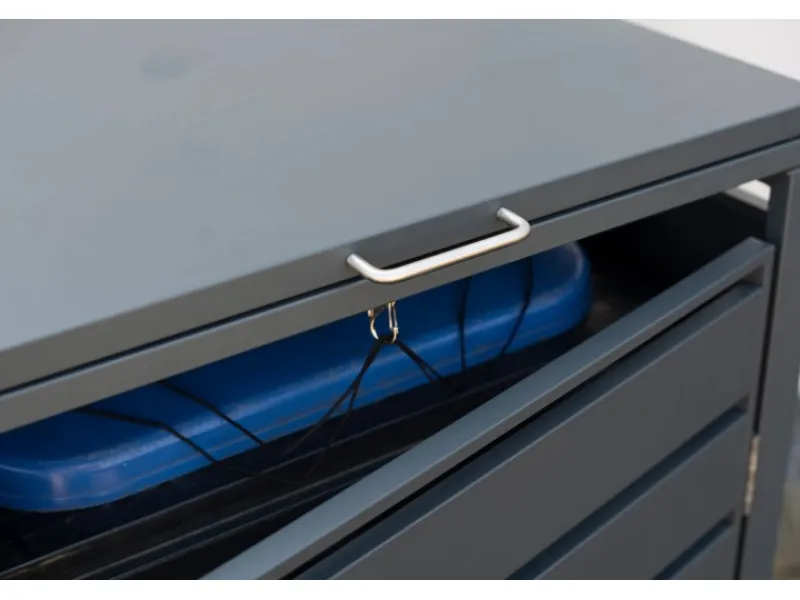 Dank der leichtgängigen Flügeltür lässt sich die Tonne mühelos in die Mülltonnenbox hineinschieben. Sie haben auch die Möglichkeit, die Mülltonnenbox von Westmann als Gartenschrank oder Gartenbox zu verwenden und damit schnell für Ordnung auf Ihrem Grundstück zu sorgen.