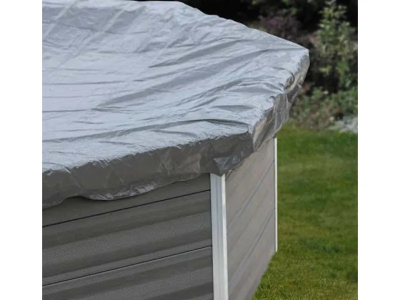 Um die Bildung von Wassersäcken, insbesondere im Herbst und Winter, zu vermeiden, ist die Winterabdeckplane mit Drainagelöchern versehen. Diese ermöglichen einen kontinuierlichen Wasserablauf und verhindern somit die Ansammlung von Wasser auf der Plane.