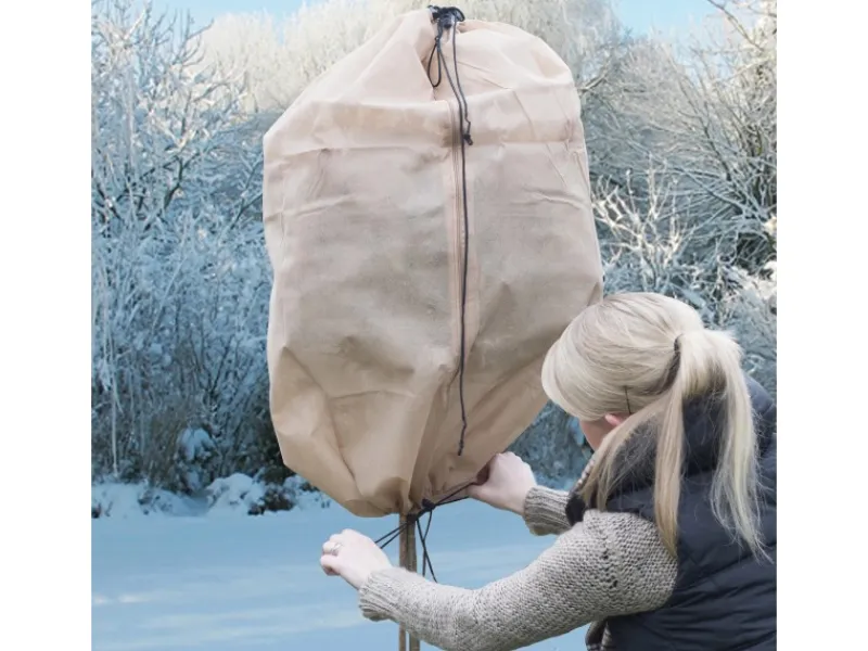 Der Videx Winterschutz Thermomantel ist ein Winterschutz aus einfarbigem Vlies (Stärke 50g/m²). Er bietet Pflanzenkronen im Winter effektiven Schutz vor Frost, Schnee und Austrocknung durch intensive Sonneneinstrahlung. Dabei ist er besonders einfach in der Anwendung. Der Thermomantel kann seitlich geöffnet, komplett um die Pflanze herum gelegt und dann mit dem Reißverschluss verschlossen werden. Oben und unten befindet sich eine Zugkordel, sodass der Mantel auch hier einfach verschlossen werden kann.