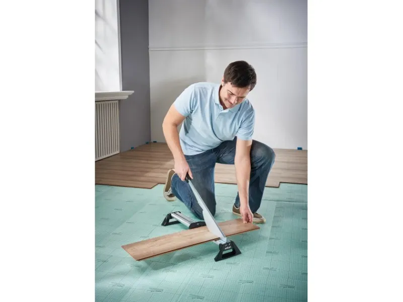 Zum sicheren Schneiden aller Laminatarten bis 8 mm Stärke (11 mm inkl. Trittschalldämmung) und 465 mm Breite
