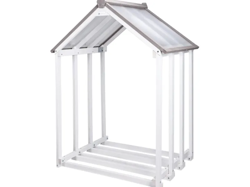 - DESIGN: Modernes Feuerholzregal in einem skandinavischem Stil-Mix aus Weiß und Grau-Anthrazit mit elegantem Spitzdach, attraktives Holz-Design, Platzierung an einer Wand stehen