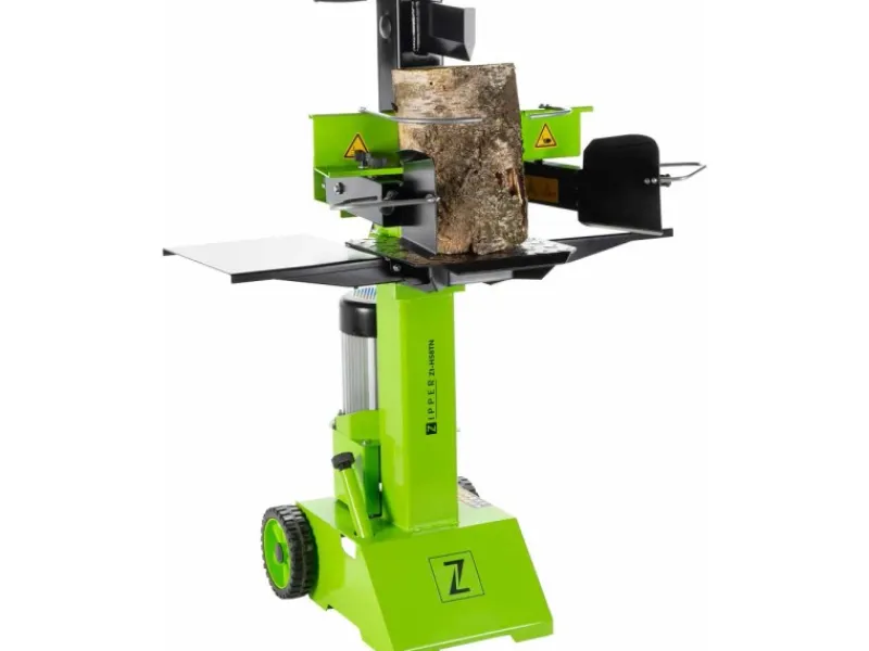Der Holzspalter ZI-HS8TN von Zipper hat eine stabile verwindungssteife Stahlkonstruktion, mit der man durch die vertikale Ausführung Kurzholz mit der Länge von 10 cm bis 50 cm spalten kann. Man kann ihn bequem durch die Fahreinrichtung transportieren und durch die klappbaren Auflagetische kann man ihn platzsparend lagern.