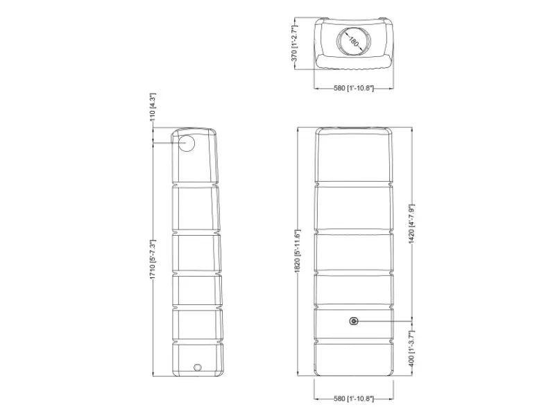Der Wassertank lässt sich durch seinen flachen Korpus platzsparend an der Wand anbringen. Die Wasserzisterne verfügt über einen Auslaufhahn, der durch den Gewindeanschluss schnell montiert ist. Über diesen lässt sich das Regenwasser abzapfen.