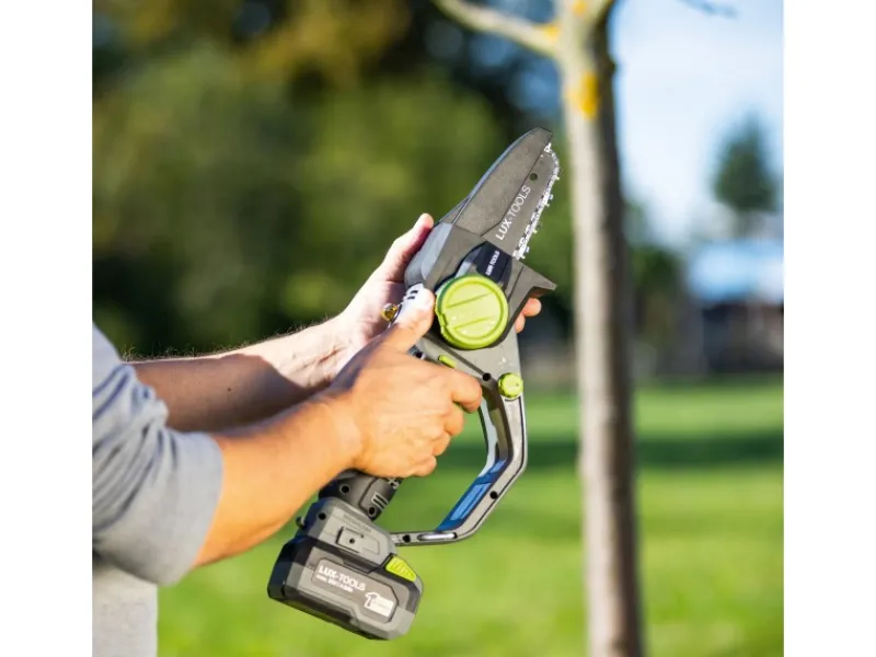 Dank der kraftvollen Li-Ion-Batterie mit 4.000 mAh Kapazität und einer Spannung von bis zu 20 V überzeugt die Astsäge mit einer beeindruckenden Schnittgeschwindigkeit von 4,7 m/s. Die kompakte Einhand-Säge mit einem Gewicht von nur 1,5 kg und einer Sägeschiene von 154 mm Länge erlaubt präzises Arbeiten auch in schwer zugänglichen Bereichen. Die maximale Schnittlänge von 120 mm sorgt für Flexibilität in unterschiedlichen Einsatzbereichen.