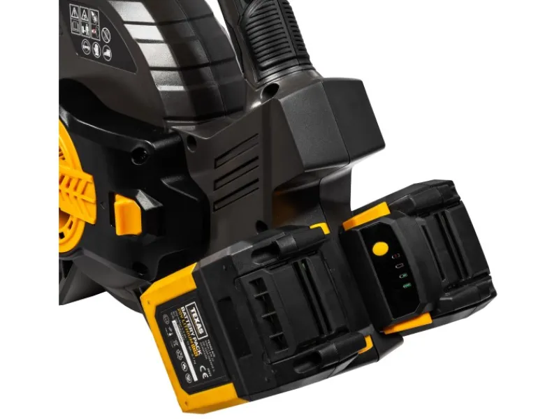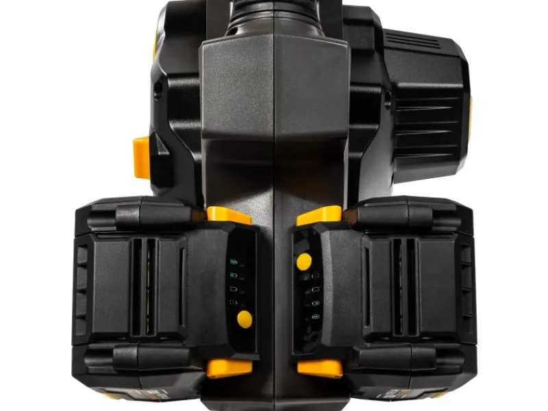 Es gibt drei verschiedene 20V-Akkus, alle mit Lithiumzellen – einen mit 2,0 Ah, einen mit 4,0 Ah und einen mit 5,0 Ah sowie einen Schnelllader und einen Doppelschnelllader, die ein oder zwei Akkus in jeweils 60, 120 oder 150 Minuten vollständig aufladen können. Sie können nur Texas 20V-Akkus für Geräte.