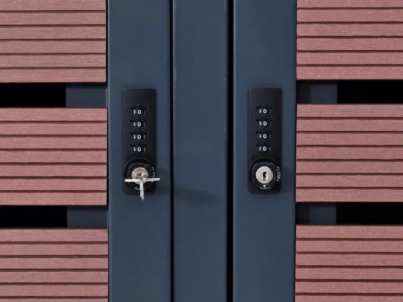 Die Mülltonnenbox ist für handelsübliche Mülltonnen mit einem Fassungsvermögen von 80 bis 240 Litern ausgelegt. Bitte messen Sie im Zweifelsfall Ihre Mülltonne vorher aus. Dieser Mülltonnenschrank ist ideal um Gelbe Säcke und Ihre Mülltonne sicher vor Wind aufzubewahren. Die Türen sind getrennt abschließbar: sie verfügen über ein Zahlenschloss, das individuell mit einem 4-stelligen Sicherheitscode eingestellt werden kann. Dank der Ablauflöcher kann überflüssiges Wasser von dem Pflanzkasten ablaufen. Durch die Belüftungsschlitze wird Kondensatbildung verhindert.