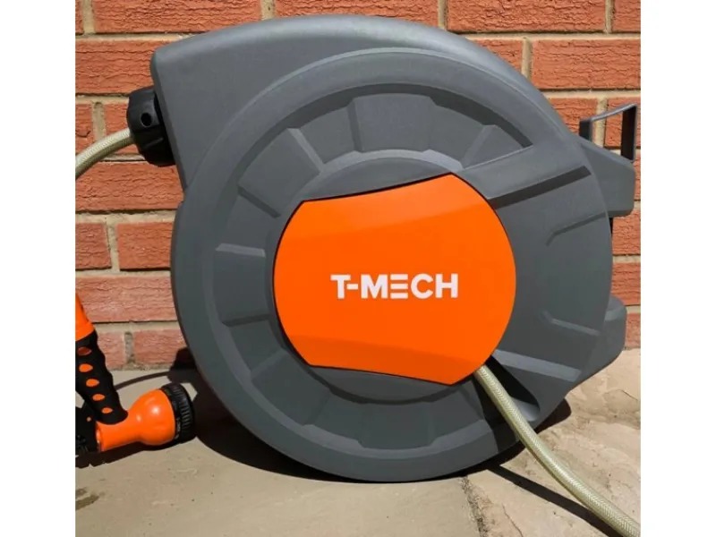 Mit diesem Gartenschlauch mit automatischem Rückzug von T-Mech können Sie ab sofort Ihre Pflanzen das ganze Jahr über pflegen.Produktmerkmale:Extra langer 30m + 2m SchlauchGRATIS Wandbefestigungen enthaltenSpritzpistole mit 8 verschiedenen Spritzmustern im Lieferumfang enthaltenDer langsame Schlauchrückzug ermöglicht es, Knicke und Knoten zu vermeidenMit dem UV-beständigen Gehäuse schützen Sie Ihren Schlauch vor UV-StrahlenEinfaches Transportieren dank des Griffs an der Oberseite der TrommelSpezifikationen:Gehäusematerial: PolypropylenSchlauchmaterial: PVCGewicht: 10kgDruck: 8,3 BarSchlauchlänge: 30m+2m Schlauchdurchmesser: 12,70mm (Standard)Schlauchanschluss: 19,05mm (Standard)Gehäusehöhe: 42cm / 420mm / 0.42mGehäuselänge: 44.5cm / 445mm / 0.45mGehäuasebreite: 23.5cm / 235mm / 0.24m