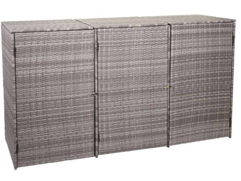 – Diese Mülltonnenverkleidung aus Poly-Ratten ist nicht nur optisch ansprechend. Neben der Tür mit Verschluss ist diese Mülltonnenabdeckung mit drei praktischen Klappdeckel ausgestattet. Diese erleichtern Ihnen das Befüllen Ihrer Mülltonnen.