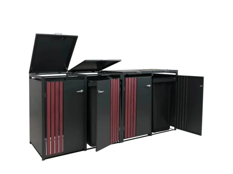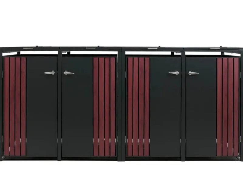 Dank der robusten Bauweise aus verzinktem Stahl überzeugt die Mülltonnenverkleidung durch ihre Wetterbeständigkeit und lange Lebensdauer. Die abschließbaren Türen schützen den Inhalt zuverlässig, während Belüftungsschlitze eine optimale Luftzirkulation gewährleisten. Durch das klare, moderne Design fügt sich die Verkleidung harmonisch in jede Umgebung ein – ob im Garten, an der Hauswand oder in der Einfahrt. Eine praktische und zugleich ästhetische Lösung, um Ordnung und Stil im Außenbereich zu schaffen.