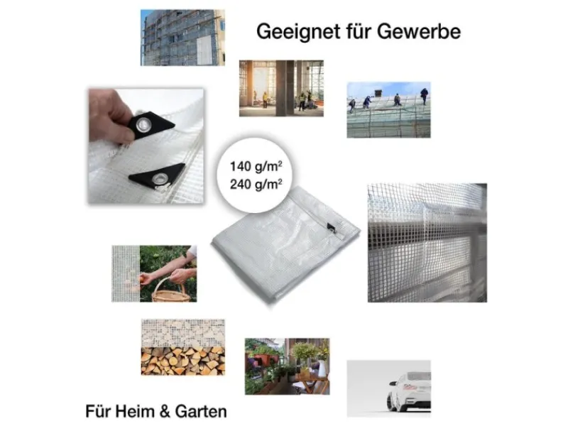 Die vielfältig einsetzbare Abdeckplane mit Gitternetz schützt zuverlässig gegen Nässe und Schmutz und kann daher als Abdeckung für verschiedenste Zwecke genutzt werden. So eignet sich die Gitter-Abdeckplane als Schutz für Autos, Boote, Anhänger und Holzvorräte aber auch zum Abdecken von Gewächshäusern, Pflanzenbeeten, Sandkästen und Gartenmöbeln. Durch die am Rand eingearbeiteten Metallösen lässt sich die Schutzplane ebenfalls beliebig befestigen und spannen.