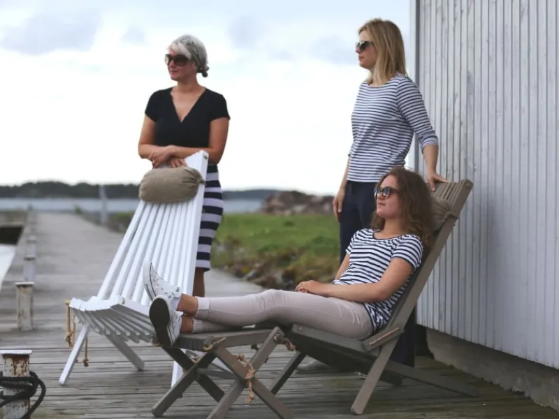 Klapphocker aus Holz dient als perfekte Fußablage zum Entspannen in den Relax-Liegen von Jardinion