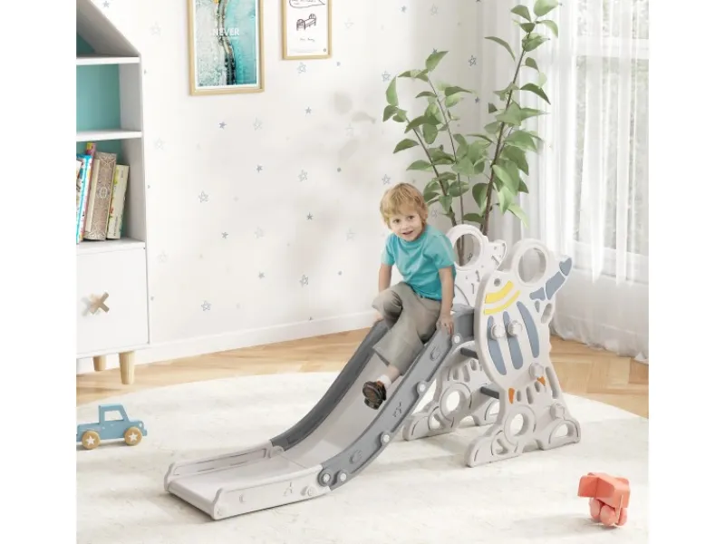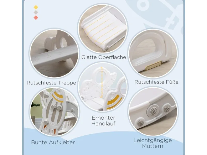 Verabschieden Sie sich von Stürzen und Kratzern, die jedes Kind beim Spielen erfährt. Die Lösung? Eine sichere, rutschfeste Leiter, eine verlängerte Rutsche und extra große Griffe für sicheren Halt. Und das ist noch nicht alles: Unsere Rutsche kommt im aufregenden Raketen-Design, das die Fantasie Ihrer Kleinen beflügelt. Beobachten Sie, wie Ihre Kleinen stundenlang ihre „Rakete starten“, die Rutsche hinuntersausen und dabei nicht nur jede Menge Spaß haben, sondern auch echte Bewegung erfahren.