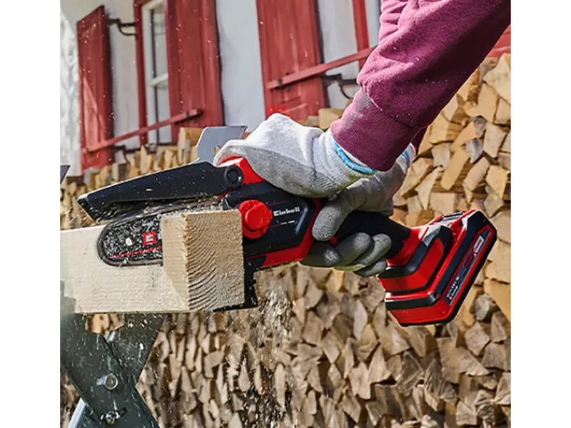 Die handliche Akku-Kettensäge verfügt über ein Schwert mit einer Länge von 15,8 cm und einer 12,5 cm Schnittlänge. Dadurch erzielt die Astsäge gute Schnittergebnisse und bietet eine lange Haltbarkeit. Das mitgelieferte Schwert- und Ketten-Set vereinfacht die Wartung. Schwert und Kette lassen sich ohne Werkzeug wechseln.
