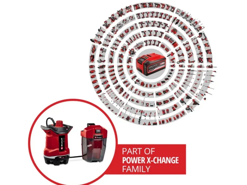 Die Akku-Schmutzwasserpumpe GE-DP 18/25 Li wird ohne Akku und Ladegerät geliefert, diese sind separat erhältlich.