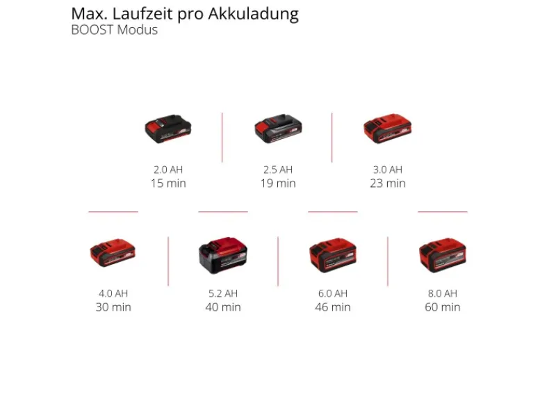 Die Pumpe verfügt über zwei Leistungsstufen: Den Modus für längere Laufzeiten und den Boost-Modus für maximale Förderleistung. Die Akku-Pumpe ist geeignet für Wasser mit maximal 25 mm großen Schmutzpartikeln. Um die Pumpe zu starten, sollte der Wasserstand mindestens 40 mm betragen, und sie kann Wasser bis zu einem Restwasserstand von 35 mm abpumpen.
