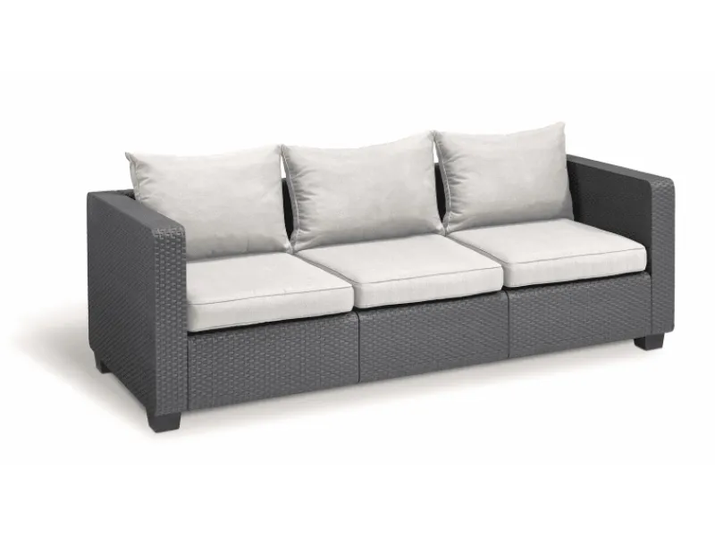 Die Allibert Salta Gartenlounge bietet eine hochwertige und praktische Lösung für den Außenbereich. Das Set besteht aus einem 3-Sitzer, einem Hocker und einem Tisch in Rattanoptik. Es ist wetterfest, UV-beständig und mit 8 cm dicken beige-farbenen Kissen ausgestattet. Die Montage ist ohne Werkzeug möglich, und jeder Sitzplatz ist bis 110 kg belastbar. Hergestellt in den Niederlanden, eignet sich das Set ideal für Garten, Terrasse, Poolbereich oder Balkon.