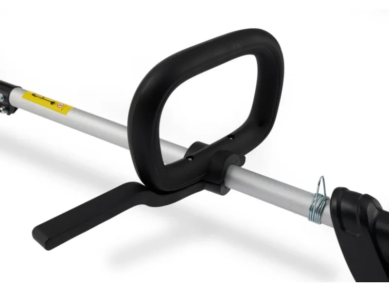 Die Alpina Elektro-Motorsense ABR 1.0 EJ ist handlich, leicht und kraftvoll! Der ABR 1.0 EJ bietet Dir die Möglichkeit ihn als Rasentrimmer oder als Motorsense einzusetzen. In beiden Fällen wird das Schnittsystem von einem 1000 Watt starken Motor angetrieben. Bei der Nutzung der Rasentrimmerfunktion steht Dir eine Tap&Go Doppelfadenspule mit einer Schnittbreite von 37 cm zur Verfügung. Das Tap&Go System erlaubt eine einfache Verlängerung des Schnittfadens (Ø 1,8 mm) durch auftippen auf dem Boden. Bei der Nutzung der Freischneiderfunktion kommt das 20 cm breite 3-T-Messer zum Einsatz, das sich mühelos durch Dein Gestrüpp kämpft. Der verstellbare Handgriff ermöglicht eine komfortable Handhabung und der Tragegurt sorgt für ein ermüdungsfreies Arbeiten. Dank des teilbaren Schafts wird der Platzbedarf bei der Lagerung minimiert. Im Lieferumfang ist ein 3-T-Messer, eine Tap&Go Doppelfadenspule und ein Tragegurt enthalten.