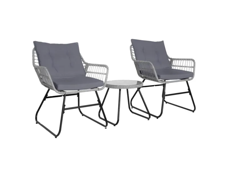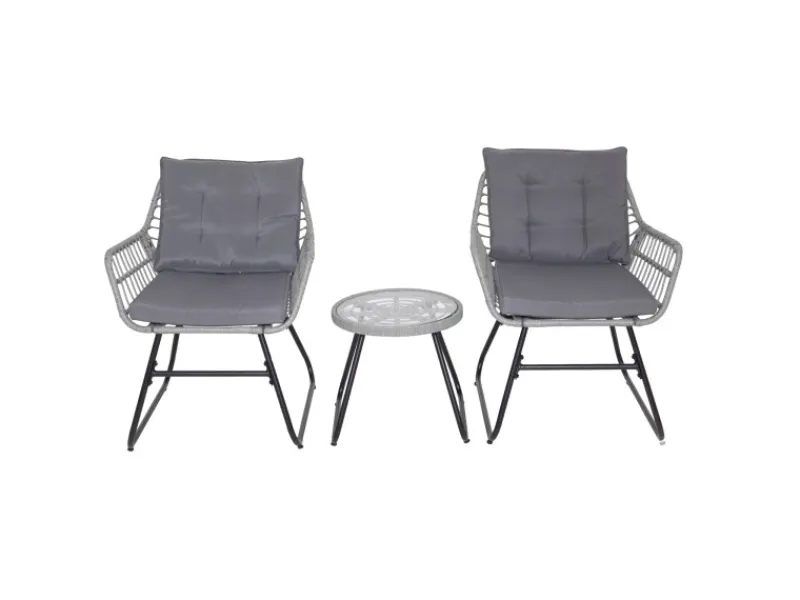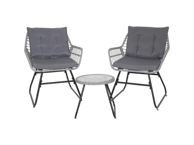 Dank der hochwertigen Kombination aus pulverbeschichtetem Stahl und Polyrattan ist das Balkonset sowohl wetterbeständig als auch leicht zu reinigen, sodass Sie lange Freude an den Gartenmöbeln haben werden.