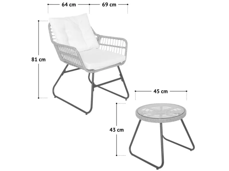 – Eine stylische Sitzgarnitur zum Entspannen – Maße Stuhl: ca. 64 x 69 x 81 cm (BxTxH) | Maße Tisch: ca. 45 x 43 cm (ØxH) –