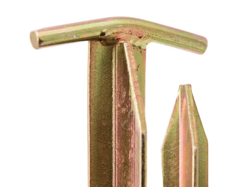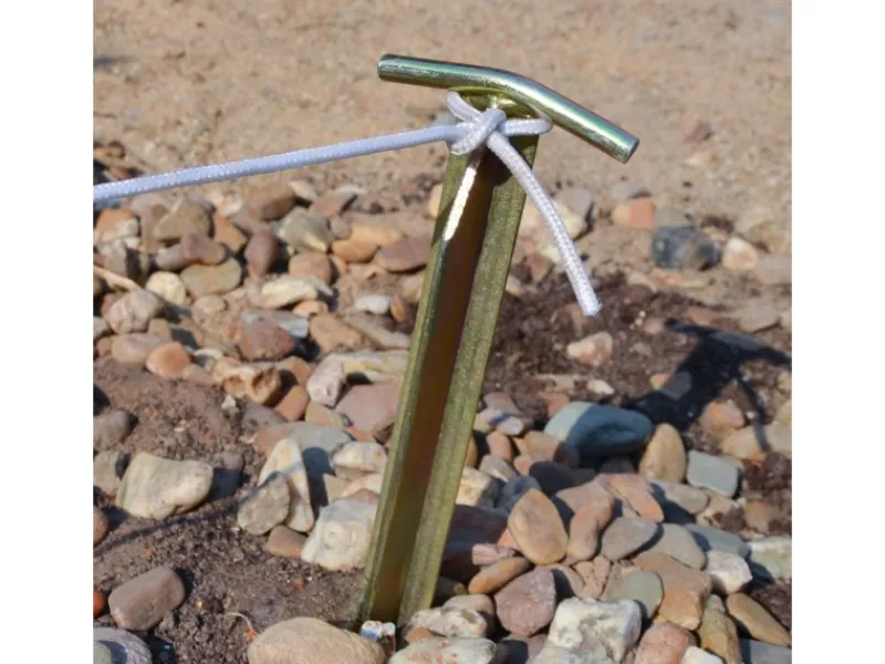 Die T-Förmige Konstruktion erzeugt eine extra große Stahl-Oberfläche. Das verbessert die Verankerung im Boden. So ist für bestmöglichen Halt gesorgt!