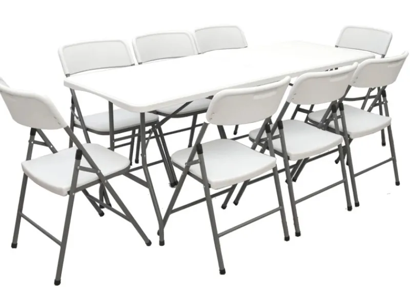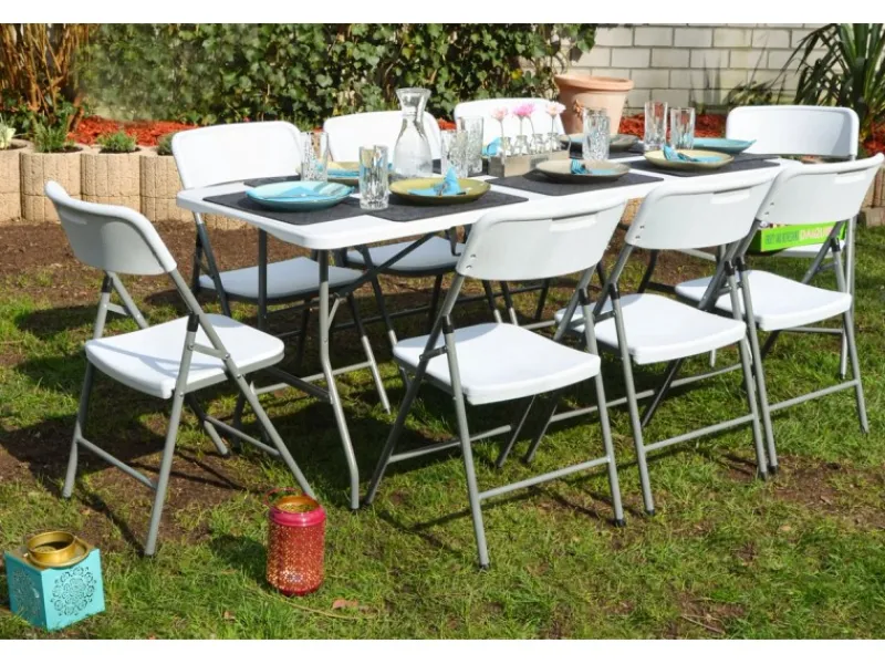 Gartenmöbelset für 8 Personen – Weiße Essgruppe aus Kunststoff als Alternative zur Biertischgarnitur