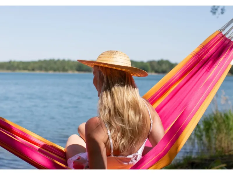 Die original brasilianische Hängematte Santana von Amazonas mit liebevoll handgearbeiteten Details verbindet brasilianische Handwerkskunst mit leuchtenden Farben und kuschelig weichen, stabilen Fäden. Damitwird selbst eine weniger große Hängematte wirklich bequem! Tief durchhängen lassen und diagonal reinlegen, so ist es am gemütlichsten.