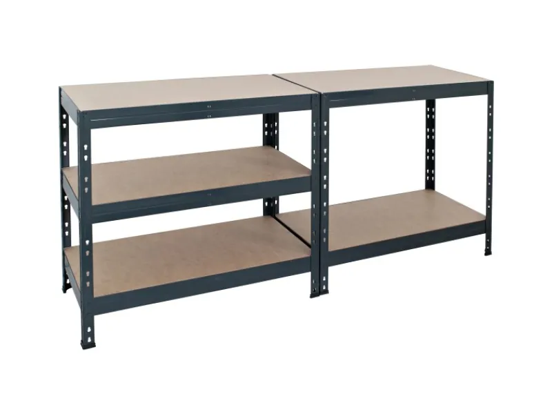 Das Ar Shelving Rivet Schwerlast-Steckregal mit HDF-Böden hat eine Tragkraft von 210 kg pro Boden bei gleichmäßiger Verteilung. Die Gesamttragkraft beträgt 1050 kg. Das Regal ist in Anthrazitgrau pulverbeschichtet und ist widerstandsfähig gegen Korrosion und mechanische Beschädigungen. Darüber hinaus zeichnet es sich mit einem schönen Design und einer einfachen Wartung aus. Das Regal kann auch als zwei gleich große Regale aufgebaut werden, wobei ihre Tragkraft pro Boden gleich bleibt.