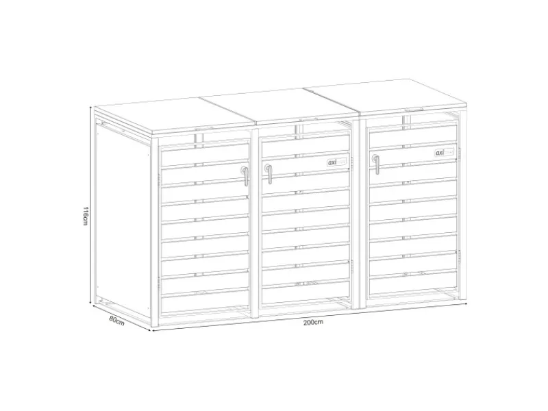 – Mülltonnenbox: 200 cm x 80 cm x 116 cm