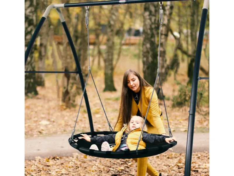 Metallschaukel mit Nestschaukel. Aus pulverbeschichtetem Stahl, innen und außen verzinkt, für einen dauerhaften Schutz gegen Rost. Soft-Touch-PP-Seile und Nestschaukel aus wasserabweisendem Textil. Verstellbare Seile von 39 bis 99 cm über dem Boden sorgen dafür, dass die Schaukel mit Kindern mitwächst. Inklusive 4 Bodenanker für die Einbettung in Beton. Geeignet für 1 Kind. Maximales Benutzergewicht: 50 kg. Einfache Montage (erfordert einen Erwachsenen). Geeignet für Kinder im Alter von 3 bis 10 Jahren.