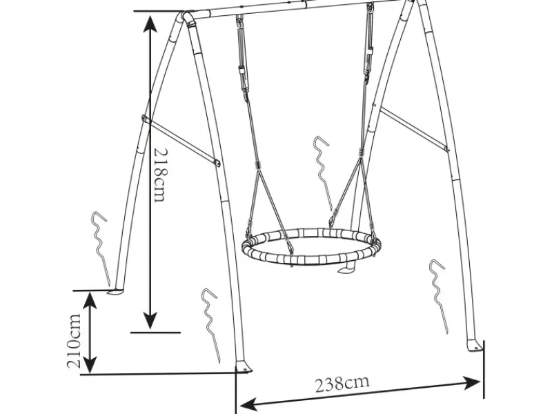 Die Metallschaukel besteht aus pulverbeschichtetem Stahl und ist innen und außen verzinkt. Für zusätzliche Sicherheit ist die Schaukel mit vier Bodenankern ausgestattet, die im Beton verankert werden können. Die verstellbaren Schaukelseile sorgen für eine lange Lebensdauer, da die Schaukel viele Jahre lang mit Ihrem Kind mitwächst. Die