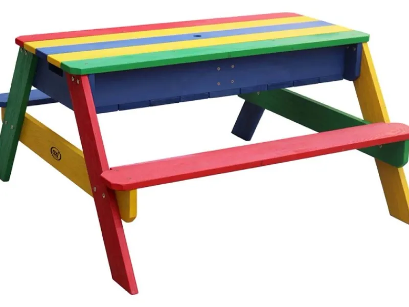 Geeignet für Kinder von 3 bis 10 Jahren. Der Picknicktisch aus Hemlock-Holz stammt aus bewirtschafteten Wäldern und ist daher eine gute Wahl. Diese Holzart splittert nicht und ist von Natur aus beständig gegen Wettereinflüsse wie Regen und deshalb resistent gegen Verrottung. Der Picknicktisch ist auch mit einer wasserbasierten Beize ohne Chemikalien behandelt. Sie müssen den AXI Sand- und Wasser Picknicktisch Nick nicht vor dem Gebrauch behandeln, Kinder können sofort sicher damit spielen.