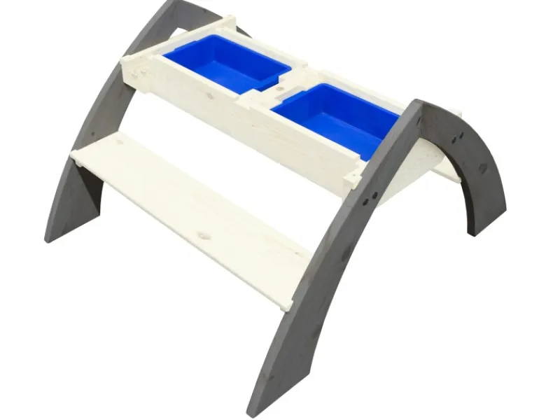 Buddel- oder Plantschspaß pur, das verspricht der vielseitige Picknicktisch Delta in grau/weiß von Axi. Im Sitzen Sandburgen bauen oder Enten schwimmen lassen, welch bequemer Spiele-Spaß für Ihr Kind. Dieser hübsche Picknicktisch in Bogenform ist nicht nur eine kindgerechte Sitzgelegenheit, dieser Tisch kann noch viel mehr: Die zwei integrierten Kunststoffwannen können wahlweise mit Sand oder Wasser befüllt werden und bieten Ihrem Kind ein wunderbares Spielvergnügen im Garten. Selbst bei prallem Sonnenschein, kann Ihr Schützling bedenkenlos am Picknicktisch Delta spielen, denn der mitgelieferte Sonnenschirm spendet Schatten und schützt vor UV-Strahlen.Sitzhöhe: 28cm