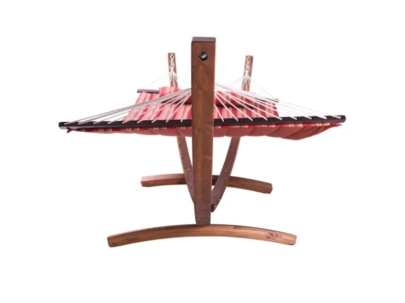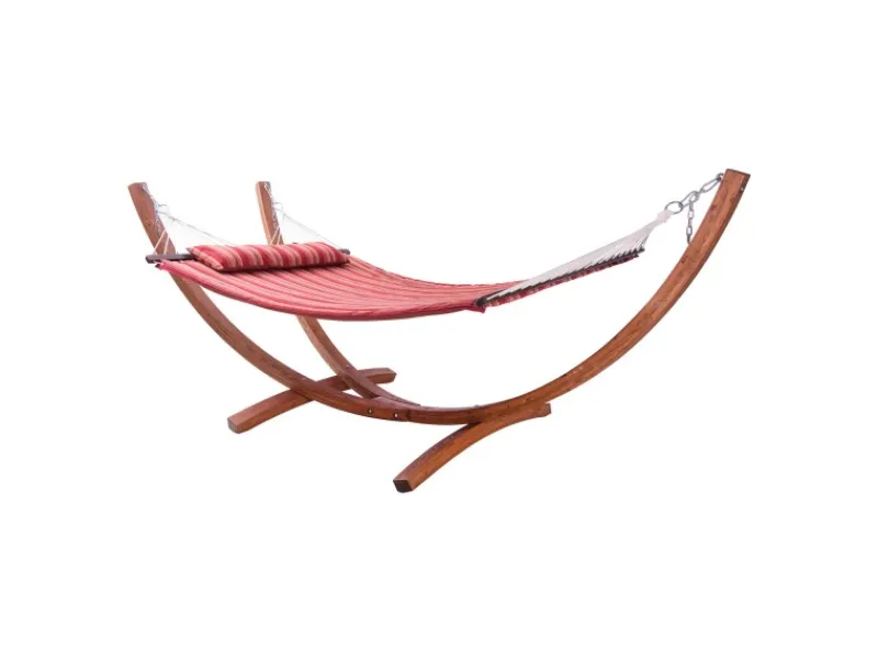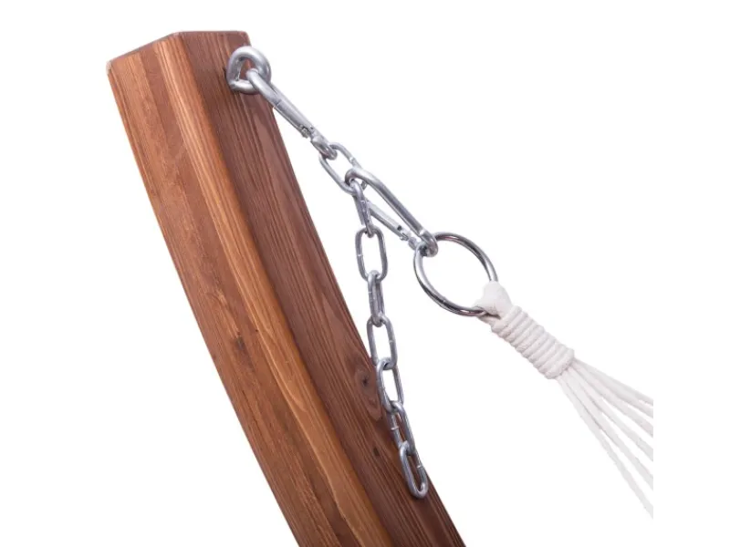 Das Gestell der Axi Hängematte Hawaii Set mit Holzgestell ist aus 100 % FSC-zertifiziertem Lärchenholz gefertigt und stammt somit aus nachhaltig bewirtschafteten Wäldern. Lärchenholz ist von Natur aus widerstandsfähig gegen Witterungseinflüsse und Holzfäule, sodass das Gestell ohne zusätzliche Behandlung im Freien stehen kann. Die umweltbewusste Verarbeitung des Holzes mit einer Beize auf Wasserbasis, ohne Chemikalien, unterstreicht die Nachhaltigkeit dieses Produkts.