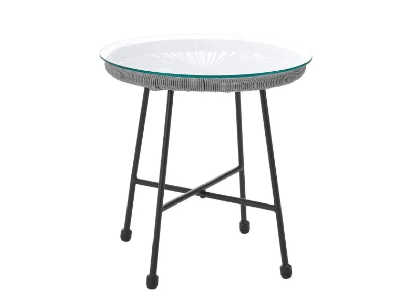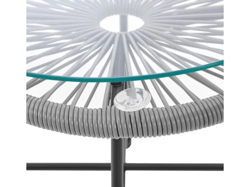 – Farbe Tischplatte: Geflecht Grau & durchsichtige Glasplatte