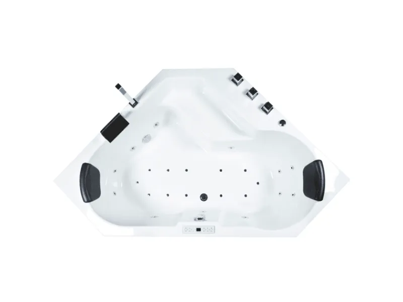 Dank der Leichtbauweise ist der Whirlpool Capri perfekt für den Innenbereich geeignet. Seine Rückenschrägen und die gepolsterten Kopfstützen sorgen für eine komfortable Sitzposition. Die dreieckige Raumsparwanne ist mit 24 leistungsstarken Massagedüsen ausgestattet, welche sich in 6 Seitendüsen, 12 Bodendüsen, 4 Rückendüsen und 2 Fußdüsen aufteilen.