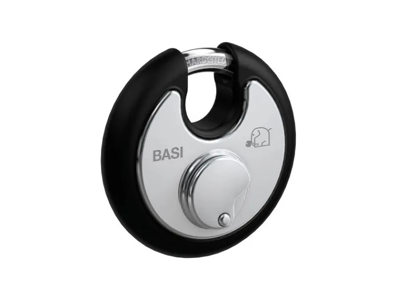 Das Rundbügelschloss der Marke Basi aus hochwertigem Edelstahl bietet höchsten Schutz für Ihr Eigentum. Eignet sich perfekt zum Verschließen von Toren, Anhängern, Auflagenboxen, Kellerräume oder Schränke. Das Vorhangschloss ist mit einem gehärtetem Stahlbügel und Gummiummantelung ausgestattet. Die Ummantelung aus Gummi und die angebrachten Zylinderklappe bieten zusätzlichen Witterungsschutz. Durch die runde Form des Schlosses bietet das Diskusschloss nur wenig Angriffspunkte und mehr Sicherheit. Dank des Korpus aus Edelstahl ist das Schloss zudem rostfrei. Die Lieferung erfolgt inklusive 2 Schlüssel.