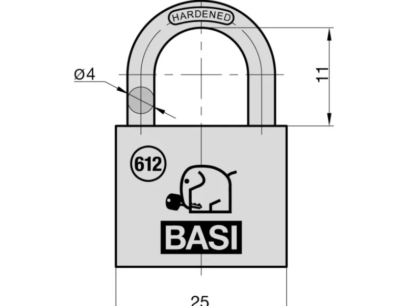 Basi Sportgeräte|- Vorhangschloss – VHS 612 – 25 mm – Verschiedenschließend – inkl. 2 Schlüssel – Messinggehäuse