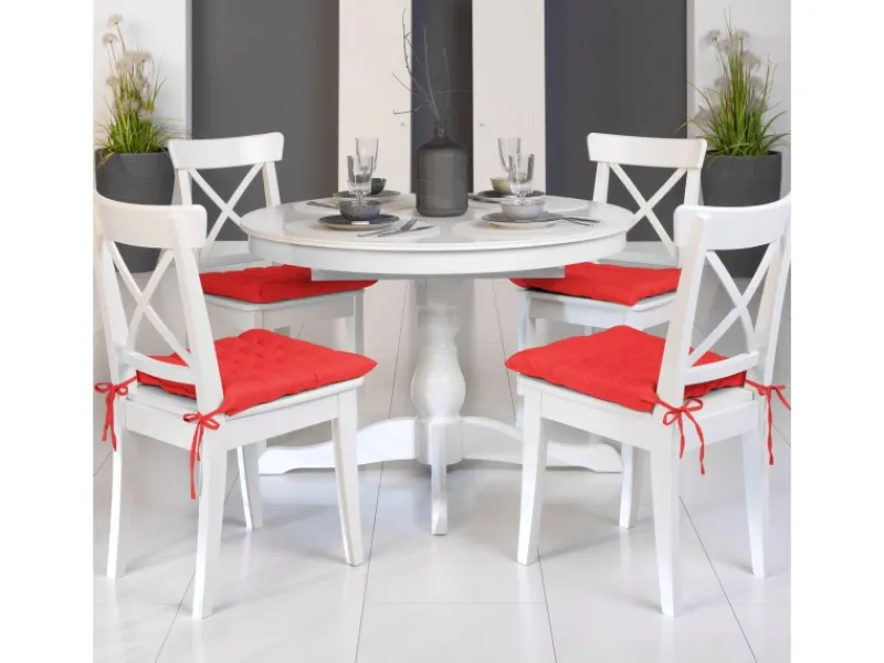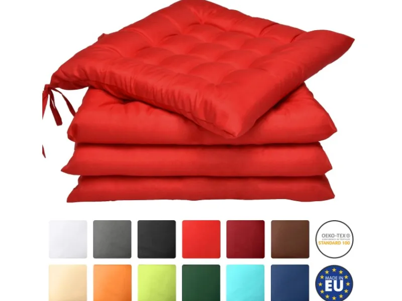Beautissu – 4er Set Lea Stuhlkissen 40 x 40 cmDas äußerst bequeme Stuhlkissen Lea ist nicht nur äußerst funktional, es besticht auch durch lebendige Farben und eine schöne quadratische Steppung.Mit einer Größe von 40×40 cm bietet es auf jedem Stuhl und jeder Bank passgenauen Sitzkomfort und kann mit Hilfe der Kordel Bänder schnell und sicher befestigt werden.Beautissu – Sitzkissen für Stühle mit 5 cm Dicke PolsterungVerwenden Sie das Kissen als Stuhlkissen, Bodenkissen, Sitzkissen oder als Bankkissen.Überall in Ihrem Wohnbereich macht die Sitzunterlage Lea eine gute Figur.Eine mehr als 5 cm starke Polsterung aus 100% Polyfasern wird von einem strapazierfähigen Bezug aus 100% Polyester umhüllt.Beautissu Sitzkissen – besonders widerstandsfähigZusammen mit den sehr gründlich vernähten Webkanten machen diese Materialien das Kissen Lea besonders widerstandsfähig, so dass Sie das Kissen ohne Bedenken auch für Ihre Gartenmöbel verwenden können.Es lässt sich problemlos bei 30°C per Hand waschen.Produktdetails:Marke: Beautissu Serie: Lea Maße: 40x40cm Stylische quadratische Steppung Handwäsche bei 30°C 5cm dicke Polsterung Material: 100% Polyester Füllung: 100% Polyfasern