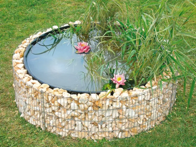 Die stabile Folieneinlage wird durch ein dickes Trennvlies vor scharfkantigen Steinen geschützt. Zum Erhalt der Folie sollte das Wasser im Winter abgelassen werden.