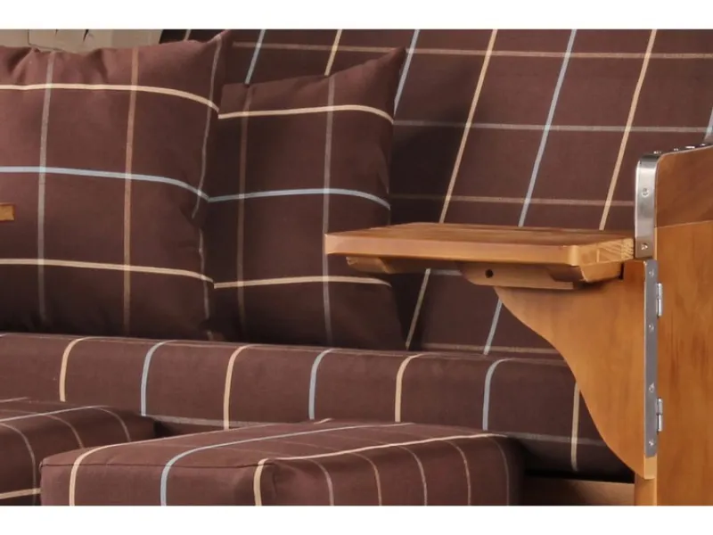 Ausziehbare Fußstützen, verstellbare Rückenlehne, schwenkbare XL Bistrotische