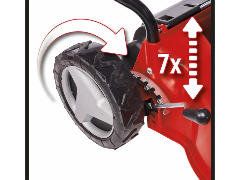Der Benzin-Rasenmäher von Einhell verfügt über eine siebenstufige zentrale Schnitthöhenverstellung von 25 mm bis 75 mm. Mit dem ergonomischen und klappbaren Führungsholm gestaltet sich das Arbeiten angenehmer und ermöglicht ein einfaches Verstauen. Ein extrahoher Auswurfkanal sorgt für außergewöhnlich gutes Fangverhalten und der große Grasfangkorb verfügt über eine Füllstandsanzeige und zwei Griffe zum einfachen Entleeren.