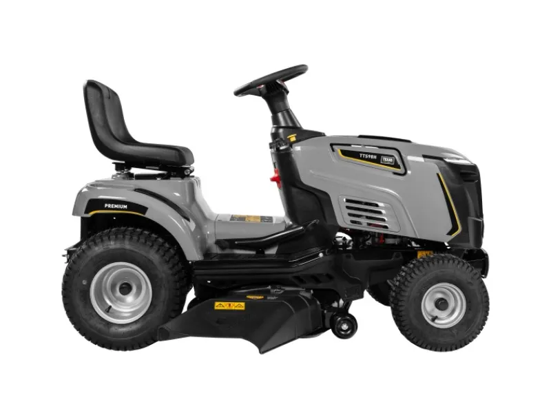 Der TTS98H ist mit einem Seitenauswurf ausgestattet, aber auch ein Mulching Plug ist enthalten, um das gemähte Gras zu verwerten. Eine Anhängerkupplung ist ebenfalls enthalten, um weiteres Zubehör anzubringen. Der Rasentraktor verfügt über ein hydrostatisches Getriebe, das eine stufenlose Geschwindigkeitsanpassung ermöglicht und das Manövrieren um Hindernisse erleichtert. LED-Scheinwerfer sorgen für gute Sichtverhältnisse während der Arbeit in dunklen Stunden.