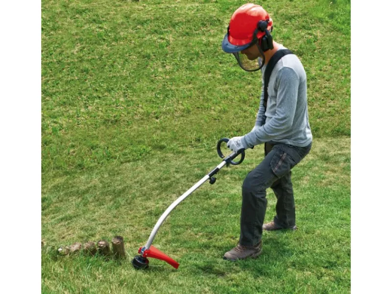 Der abgewinkelte Aluminium-Führungsholm ist auf ergonomisches Arbeiten abgestimmt. Durch eine bessere Haltung beim Arbeiten wird Ihr Rücken geschont und Ermüdungserscheinungen bleiben fern. Am oberen Ende des Trimmers befindet sich ein stufenlos einstellbarer Zusatzgriff um für ein präzises Handling zu sorgen. So behalten sie stets die Kontrolle über die Position des Trimmers und sparen sich zusätzlichen Kraftaufwand.
