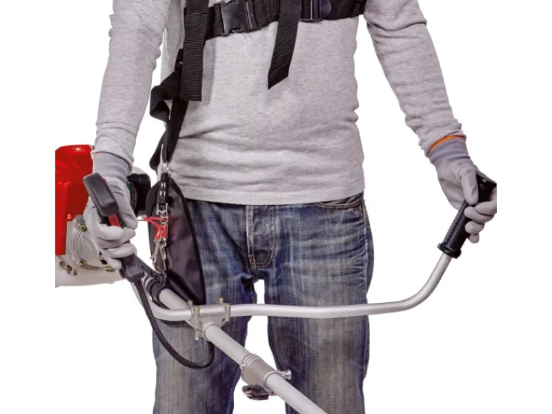 Alle Bedienelemente der Sense sind gut erreichbar am universell einstellbaren Aluminium-Zweihandgriff in Bikehandle-Ausführung untergebracht, so dass sich die Sense sehr komfortabel und präzise führen lässt. Für fachgerechtes Mähen kann die GC-BC 52 I AS wahlweise mit einem 3-Zahn-Messer oder einer Doppel-Fadenspule mit Tipp-Automatik bestückt werden, die im Lieferumfang enthalten sind. Die Sense verfügt über einen stabilen Führungsholm aus Aluminium, der hoher Beanspruchung standhält. Ihr Quick-Start-System mit dem gut erreichbaren Primer und Auto-Choke ermöglicht schnelles und einfaches Starten. Für Arbeitssicherheit sorgt die Fliehkraftkupplung, die das Schneidwerkzeug im Leerlauf auskuppelt. Der Komfort-Tragegurt gewährleistet angenehmes Arbeiten. Für einfachen Transport und platzsparende Aufbewahrung lässt sich die Sense dank Split Shaft mit wenigen Handgriffen in zwei Teile zerlegen.