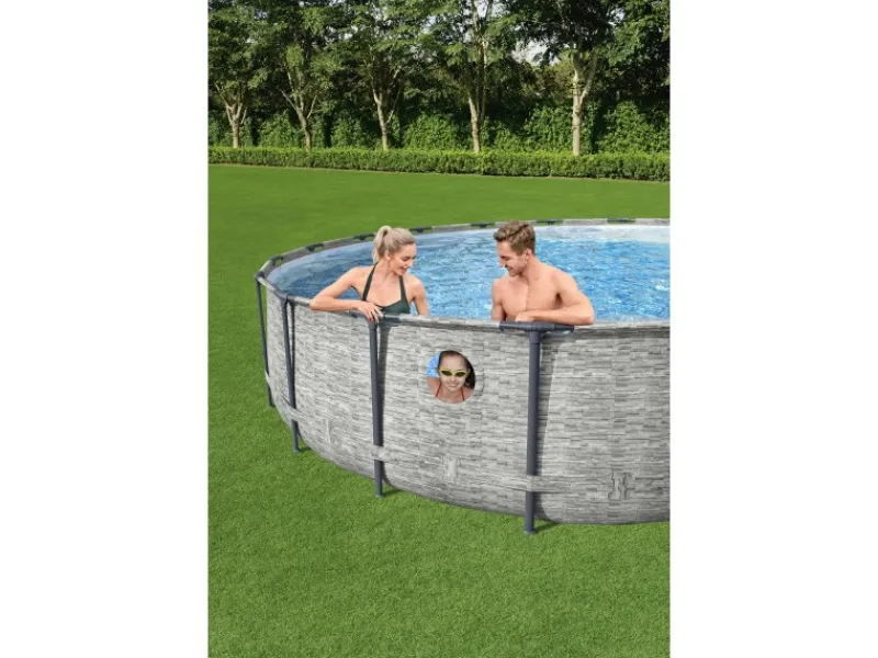 Der Stahlrahmenpool verfügt über einen Sandfilter, der das Badewasser sauber hält und Verschmutzungen einfach entfernt. Zum Schutz vor äußeren Einflüssen ist er zusätzlich mit einer passenden Abdeckung ausgestattet. Ein Chemiedossierer ist ebenfalls inklusive. Als weiteres Extra besitzt der Swimmingpool eine Poolleiter, die Ihnen den Ein- und Ausstieg erleichtert. Dieser Pool ist GS-geprüft. Der Pool hat eine Wasserkapazität von 23.062l sowie Fenster.