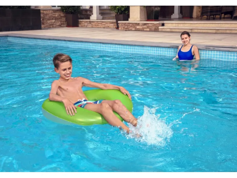 Diese Schwimmhilfe ist in 2 unterschiedlichen Farben verfügbar: Grün oder Orange. Die Farbauswahl erfolgt zufällig.