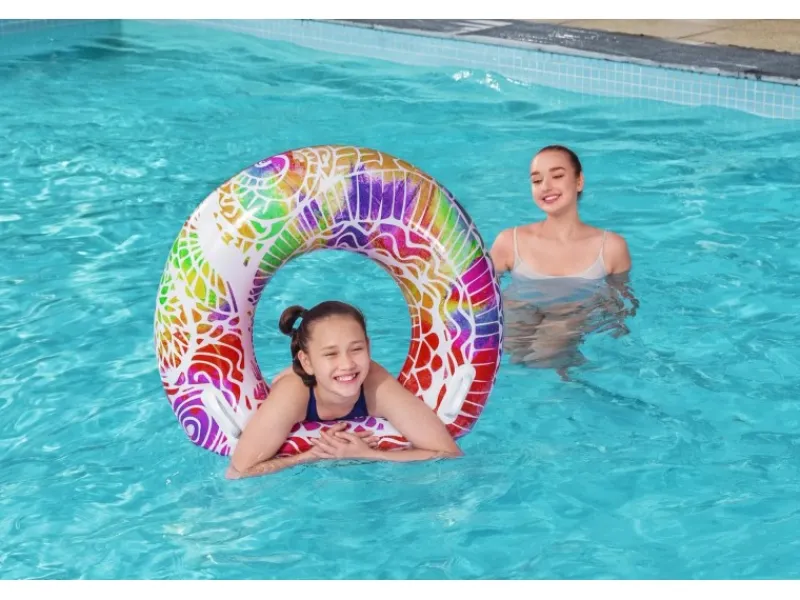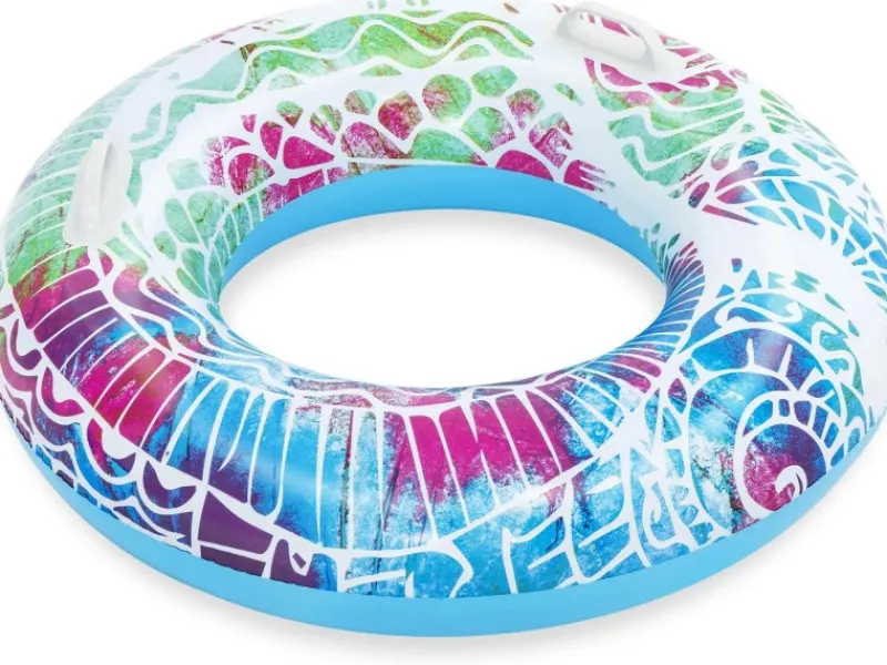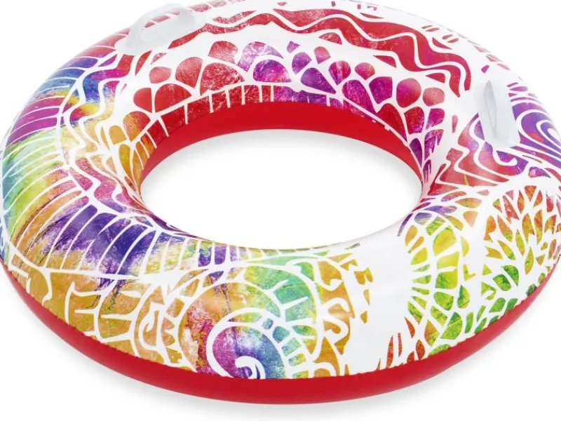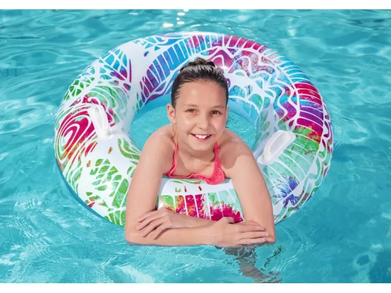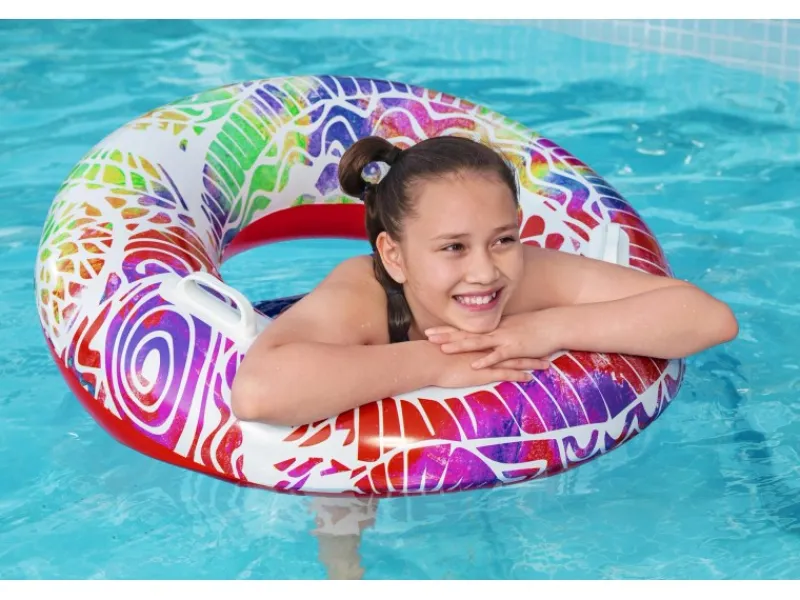 Tauche ein in den Sommer mit dem Bestway Schwimmring Summer Swirl! Dieser fantastische Schwimmring ist mit einer Größe von Ø 80 x 24 cm ist ideal für Wasserratten ab 10 Jahren, egal ob Kinder oder Erwachsene. Der Summer Swirl punktet nicht nur mit seiner Größe, sondern auch mit seinen zwei faszinierenden Mandala-Designs, die einen Hauch von Kreativität und Eleganz in deine Pool- oder Strandtage bringen. Die robusten Haltegriffe bieten zusätzliche Sicherheit und Komfort. Und das Beste daran? Der Schwimmring ist im Handumdrehen aufgeblasen und genauso mühelos zu transportieren wie zu verstauen.