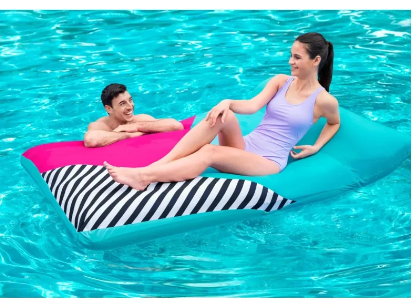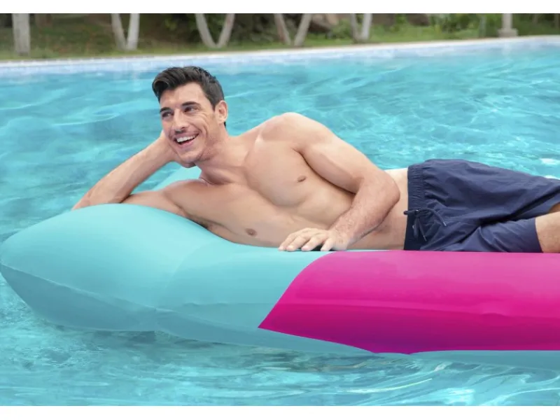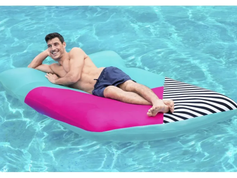 Die aufgeblasene Größe beträgt 183 cm x 124 cm x 33 cm, während die unaufgeblasene Größe 200 cm x 129 cm beträgt.